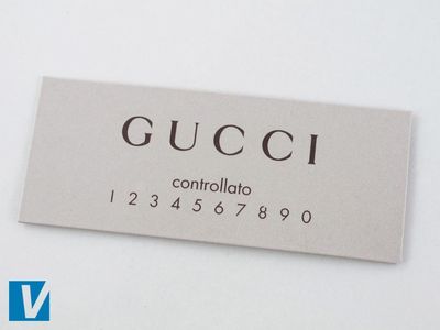 New Gucci handbags are accompanied by a 'Controllato' card which signifies that the handbag was checked after it was made. GUCCI is printed top and centre with the word 'Controllato' beneath it followed by the set of numbers 1234567890.